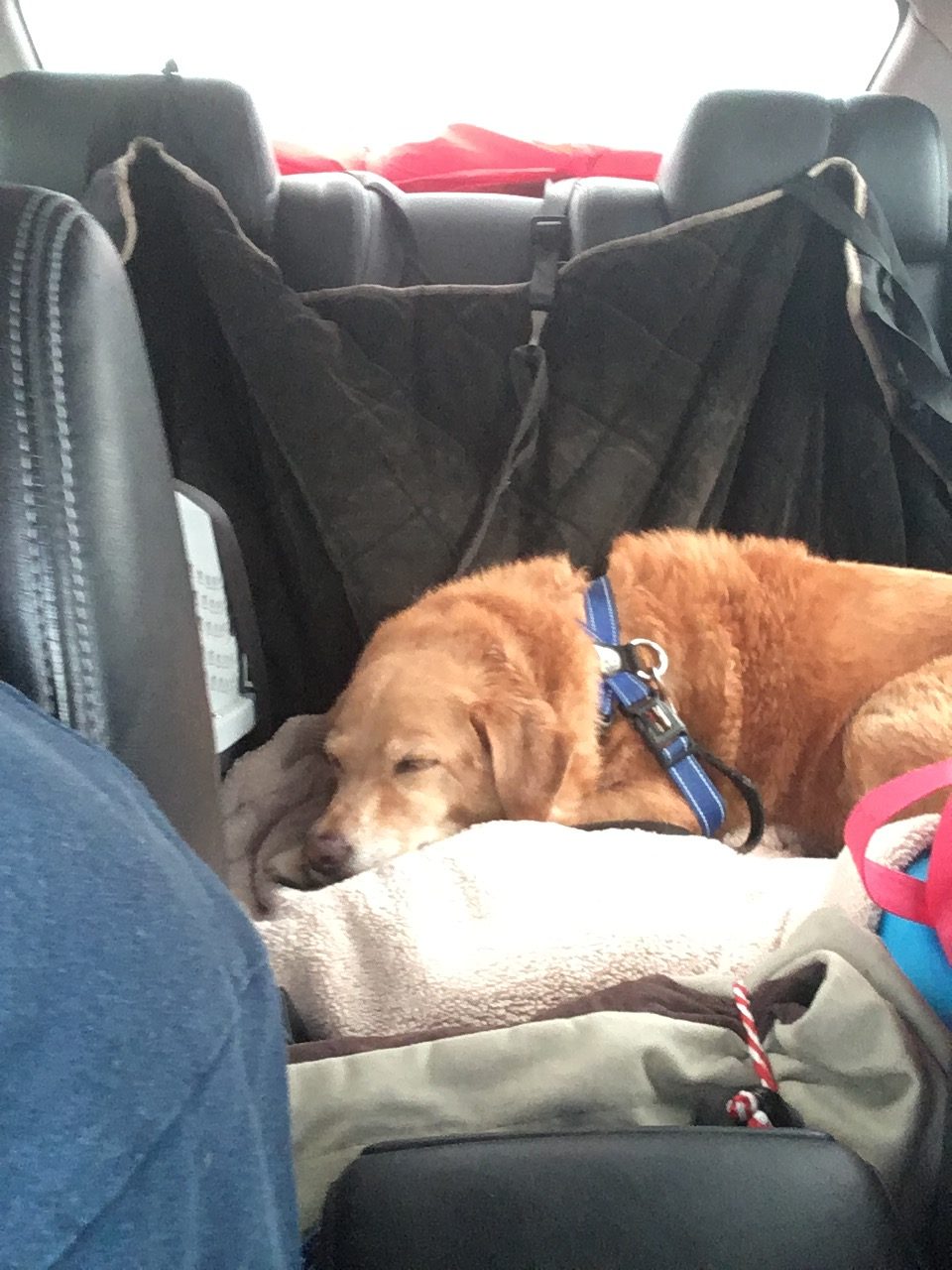 Behavioral flexibility is what allows our dogs to take on novel experiences bravely, try things they’ve never tried before, conquer new challenges. Our dogs don’t just learn to do things. They learn how to learn, how to temper and alter their behavior as the environment changes. At age 11 my dog, Stella, learned to climb steps into our bed – and then to climb red rocks high above Sedona. Stewie learned to pee outside at age 2 when we found him, and then how to pee on cue in a hurricane at age 10. When we broke down on the highway they both learned how to ride in a cramped tow truck, because we do new things all the time. They meet dogs sometimes and ignore them other times. Horses and chickens were a curiosity at first, but Stella and Stewie have learned to just take in novel experiences without a fuss. They visit hotels and relatives’ homes – and sleep on beds and dog beds and tile floors and on mats. It’s not always easy, but we take our time when they need an extra few moments to let things soak in.