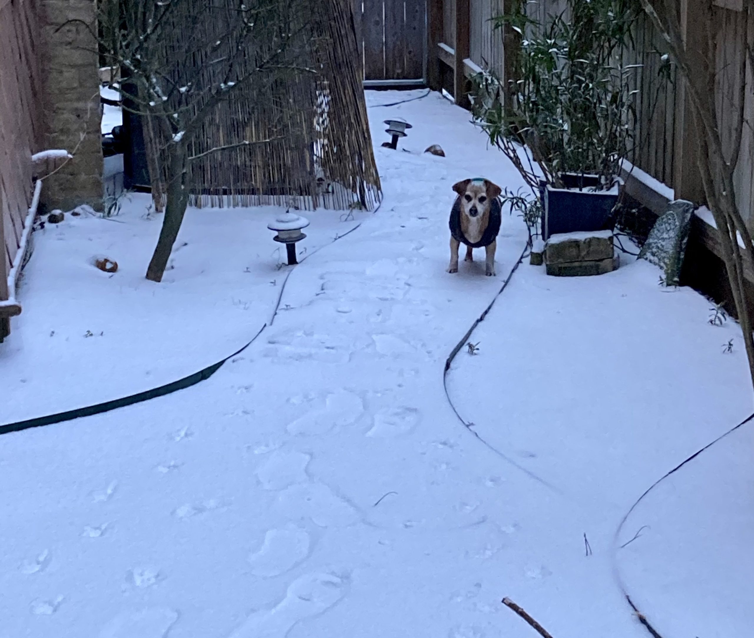 Above: Stella and Stewie showing off their behavioral flexibility going outside to potty during Hurricane Harvey.